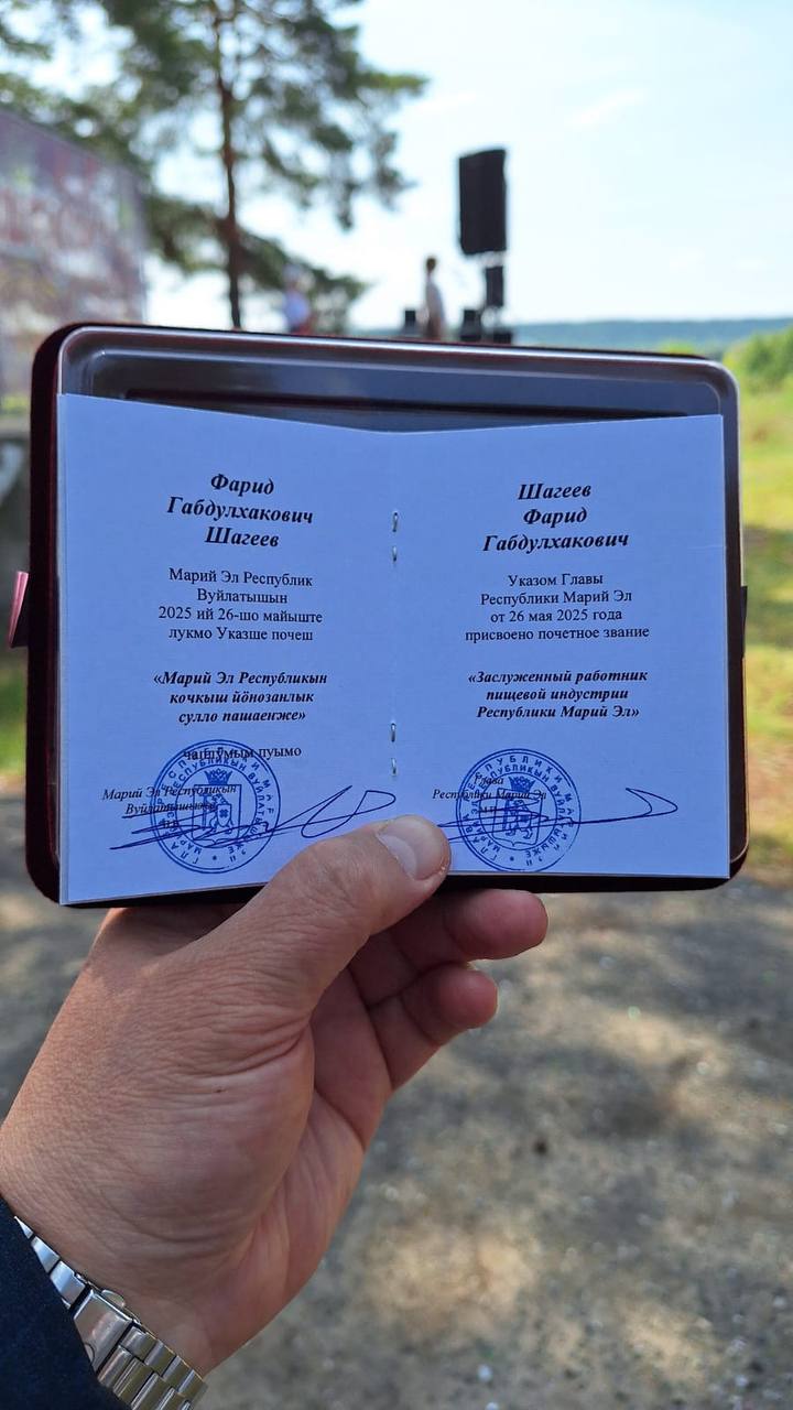 Директор нашей компании, Фарид Габдулхакович Шагеев, получил награду «Заслуженный работник пищевой индустрии Республики Марий Эл»!
